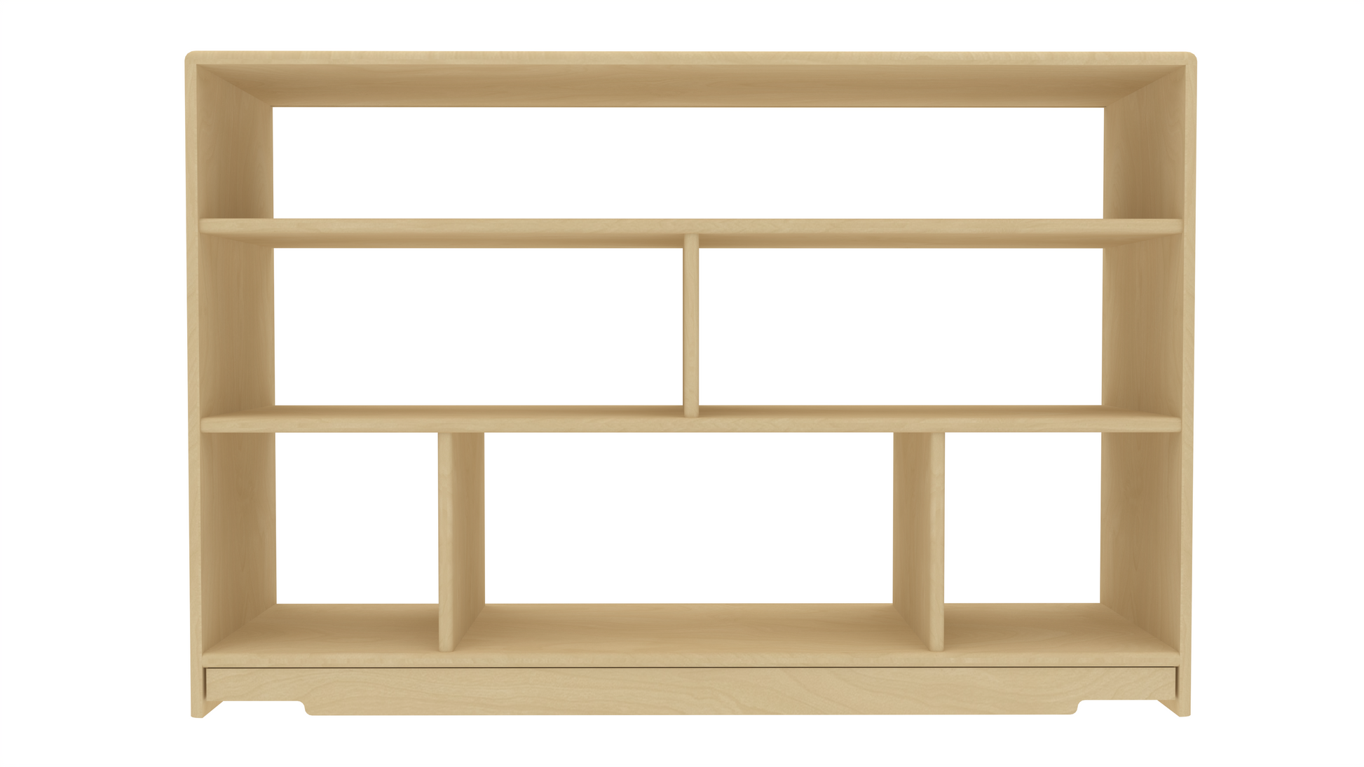 Three wide tiers and six roomy cubbies help keep books, toys, and supplies neatly organized and within easy reach for children. The natural wood finish complements modern learning environments, while the rounded edges and smooth surfaces offer a clean, child-friendly look. Whether placed in the center of the classroom or used to divide space, this shelf brings smart design to everyday use.
